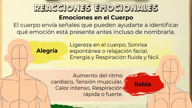 De estos enlaces puedes descargar las guía para realizar los ejercicios de reacciones emocionales Emociones en el Cuerpo.